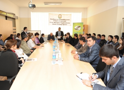 "MIRAS” Social Organization in Support of Studying of Cultural Heritage held a seminar at Azerbaijan Tourism Institute within the framework of project “Development and propagation of archaeological tourism in Azerbaijan” on 5 October, 2011. The donor of the project is Council of State Support to NGOs under the President of the The purpose of project “Development and propagation of archaeological tourism in Azerbaijan” and the seminars held within the scope of the project in 2011, Tourism Year in Azerbaijan is propagating archaeological tourism in Azerbaijan; to attain the development of this domain; to increase attention to historical and archaeological monuments and interest to the science of archaeology and to provide the protection of monuments. At the seminar Deputy Chairman of MIRAS Social Organization, Arzu Soltan informed the attendees about the Organization and its activity saying that project “Development and propagation of archaeological tourism in Later on chairman of MIRAS Social Organization, PhD, Fariz Khalilli delivered a slide presentation on the theme “We must love and make loved archaeological heritage for its protection and propagation”. The speaker talked about unique archeological monuments in several areas of Chief of Agsu Archaeological Expedition, Doctor of Historical Sciences, and Professor Gafar Jabiyev gave information to the participants on successes gained in the field of investigation of archaeological monuments in Web-site “www.archaeotourism.az”, worked up within the framework of project “Development and propagation of archaeological tourism in Teacher staff and students of Azerbaijan Tourism Institute, scholars and mass media representatives participated at the event.